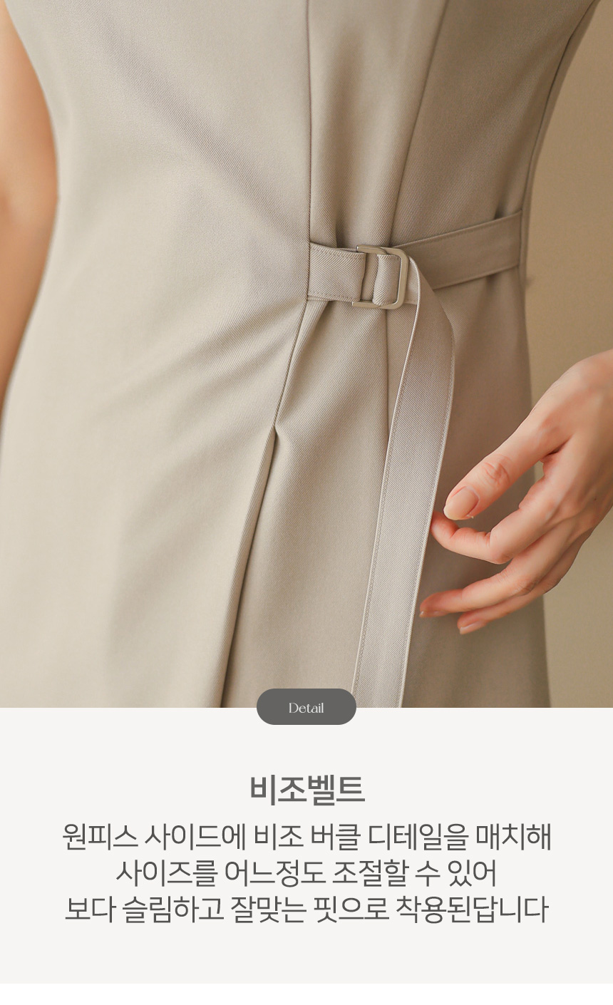 원피스는 사이드에 더해진 비조 버클 디테일로