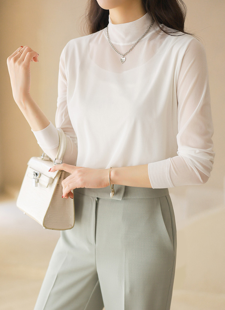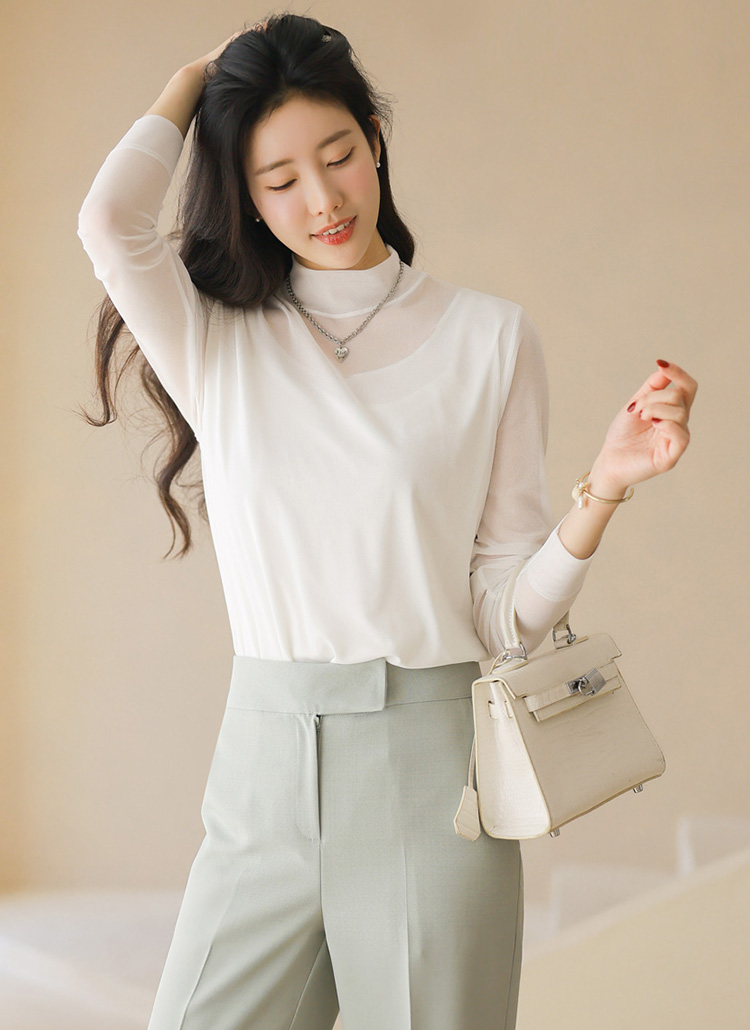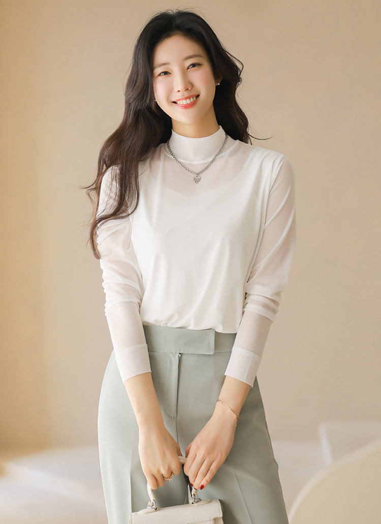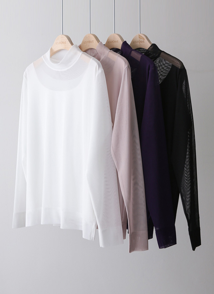 • 엔데이 심플 베이직 쿨링 시스루 레이어드 반하이넥 티셔츠