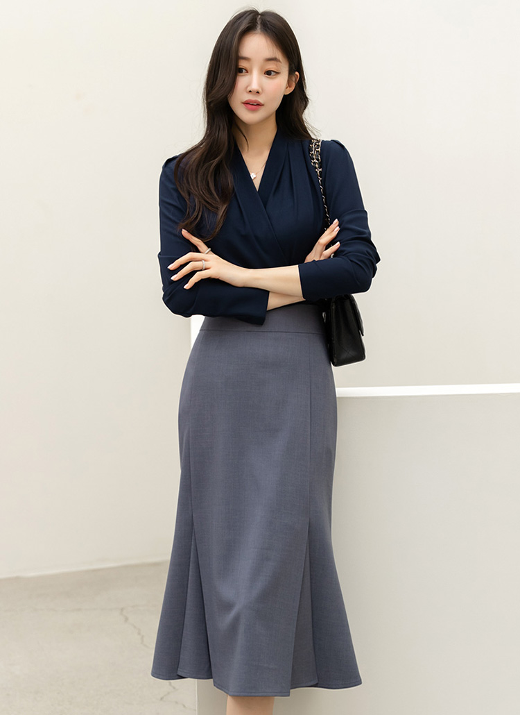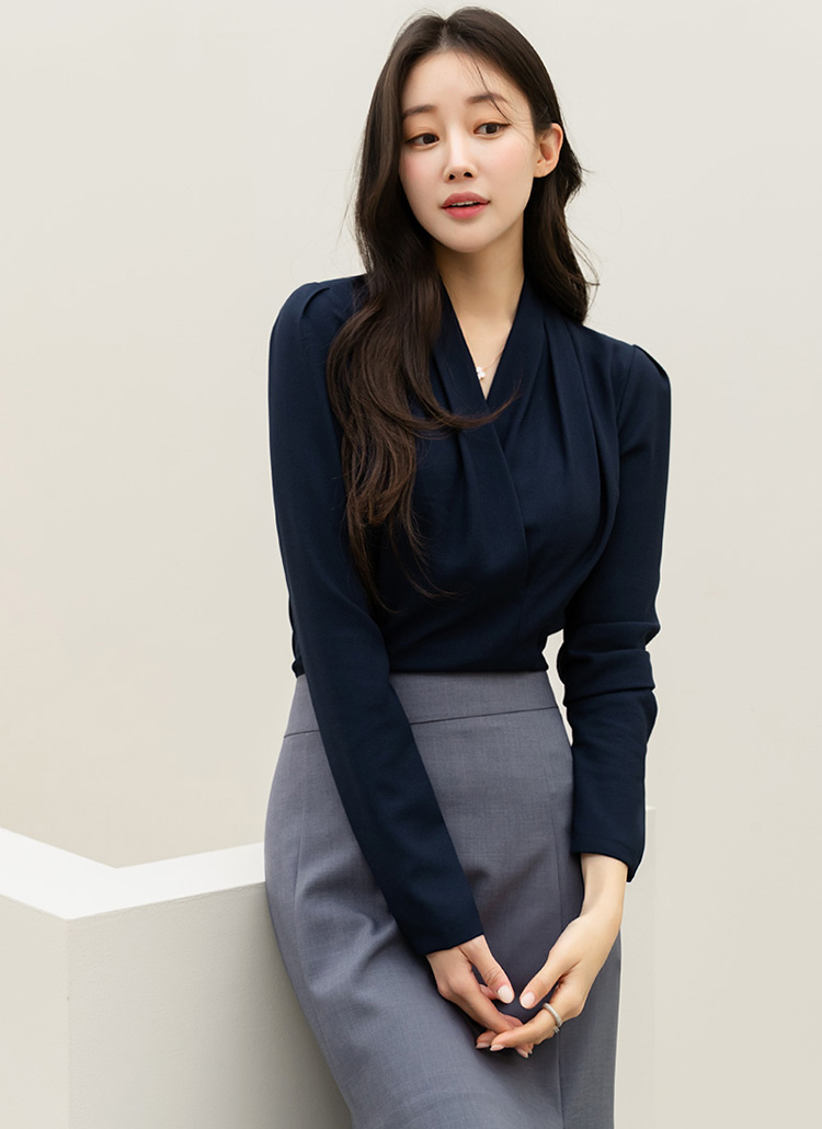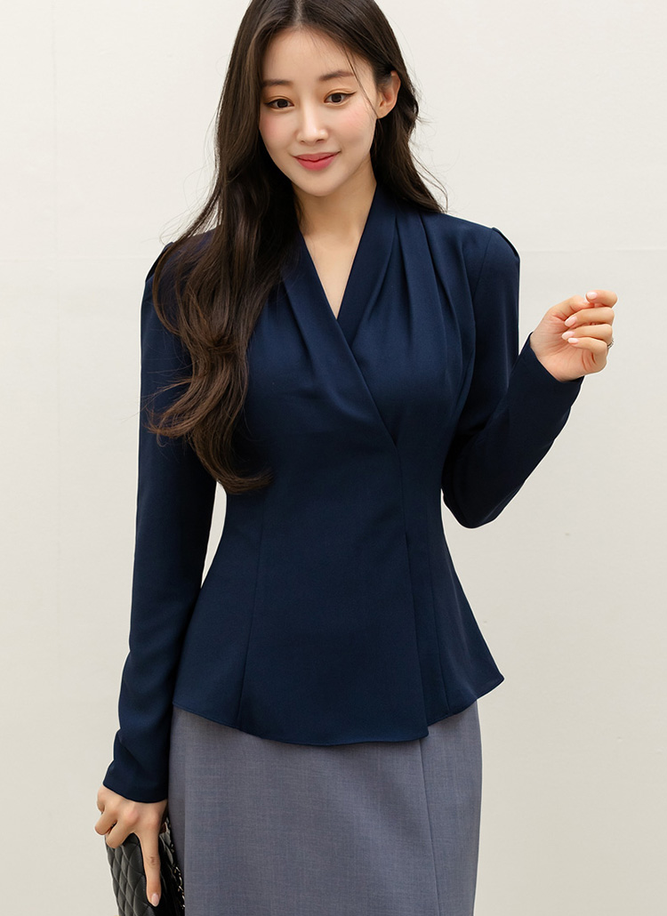• 메데토 볼륨 셔링 랩 디자인 페플럼 블라우스
