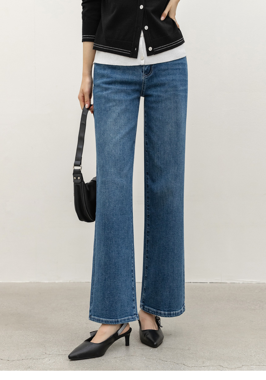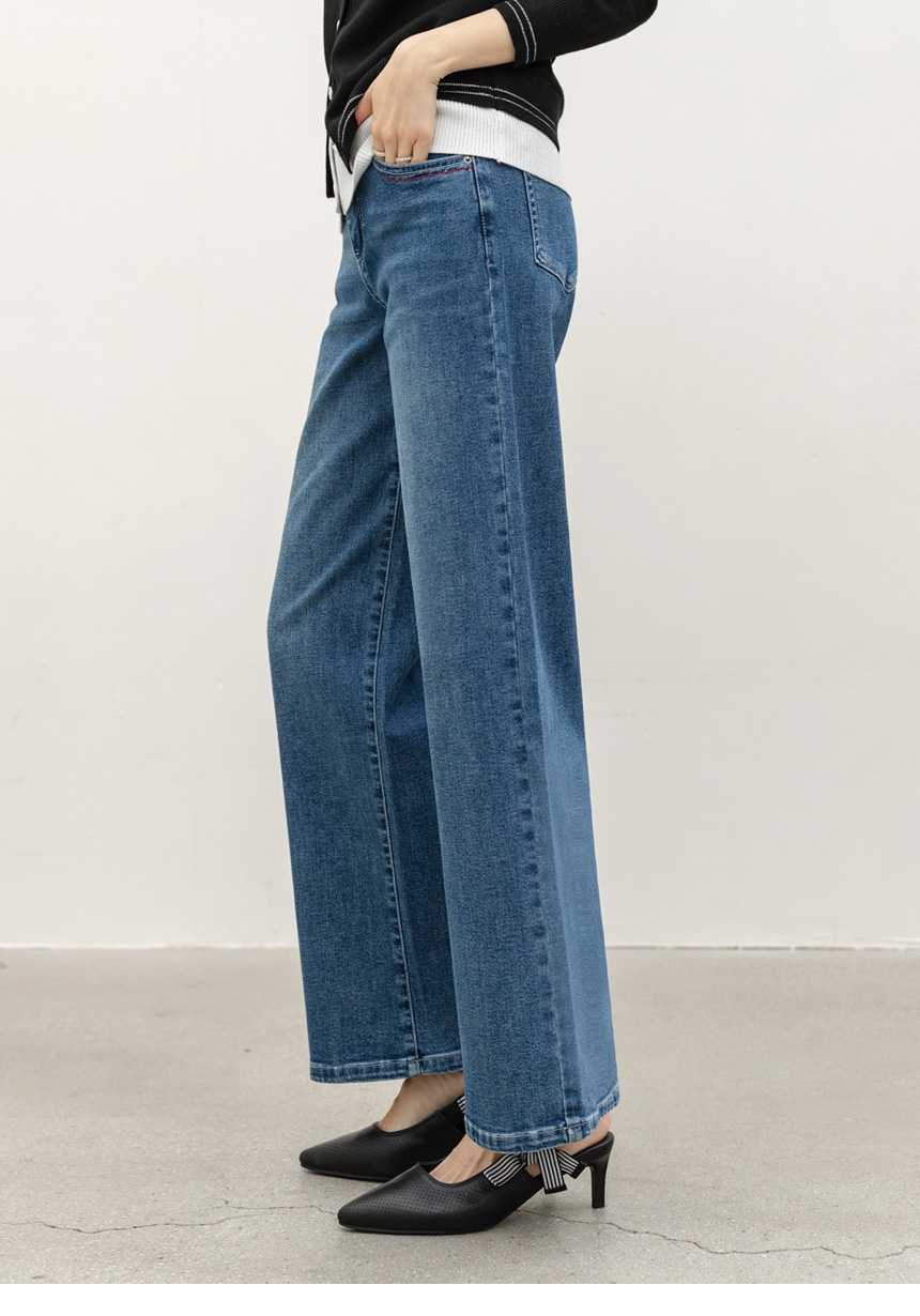 한층 더 세련된 분위기를 완성하는 데님 팬츠예요