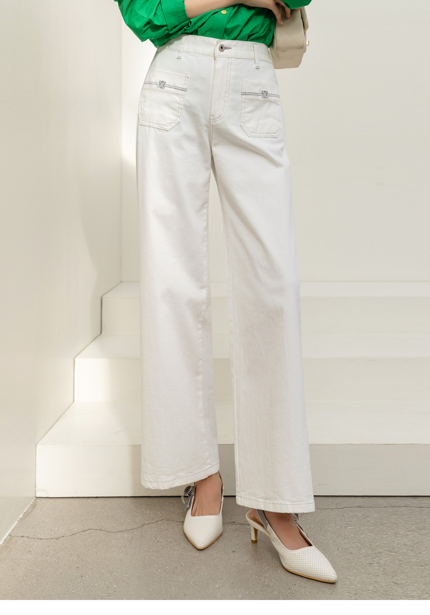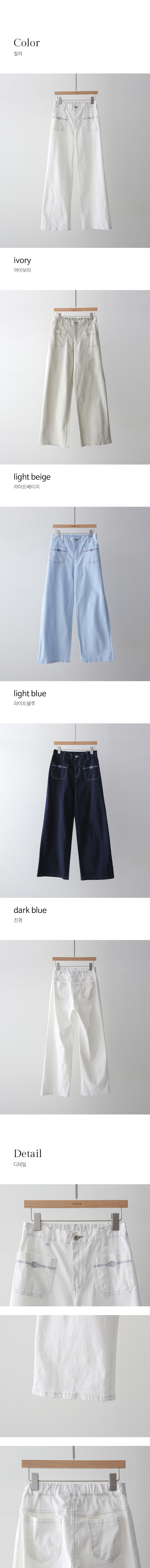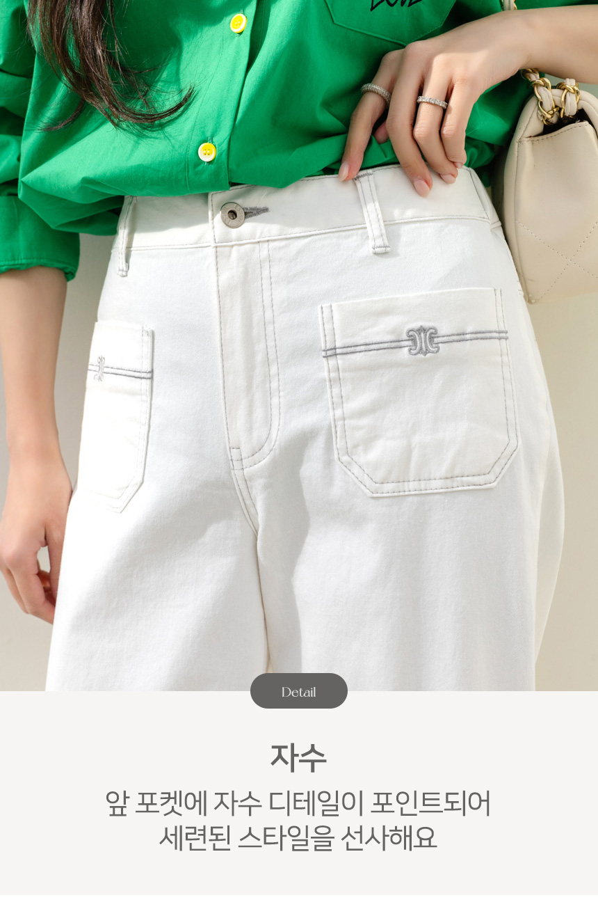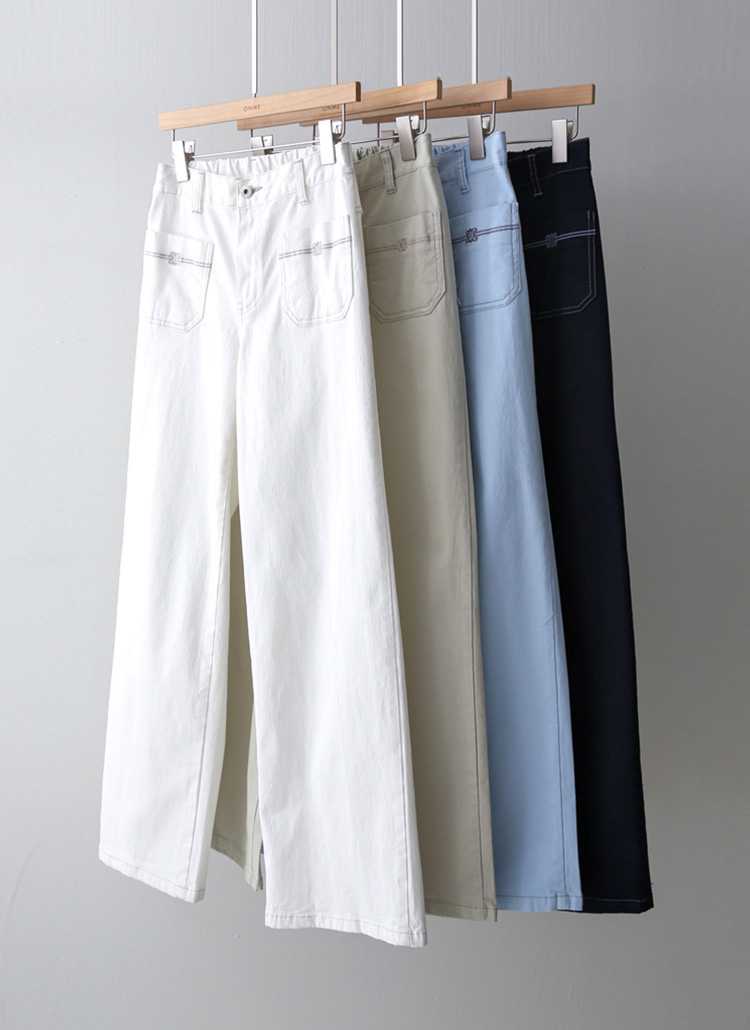 • 온디어 자수 포켓 백 밴딩 세미 와이드 일자 면 팬츠