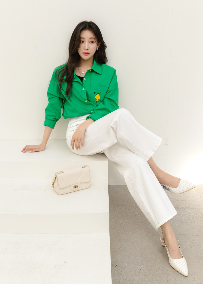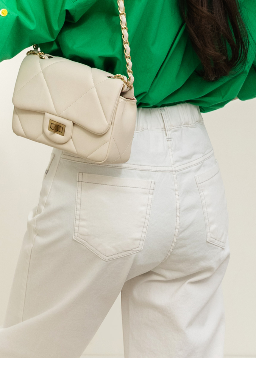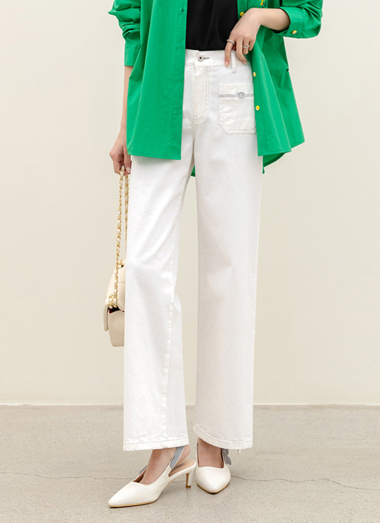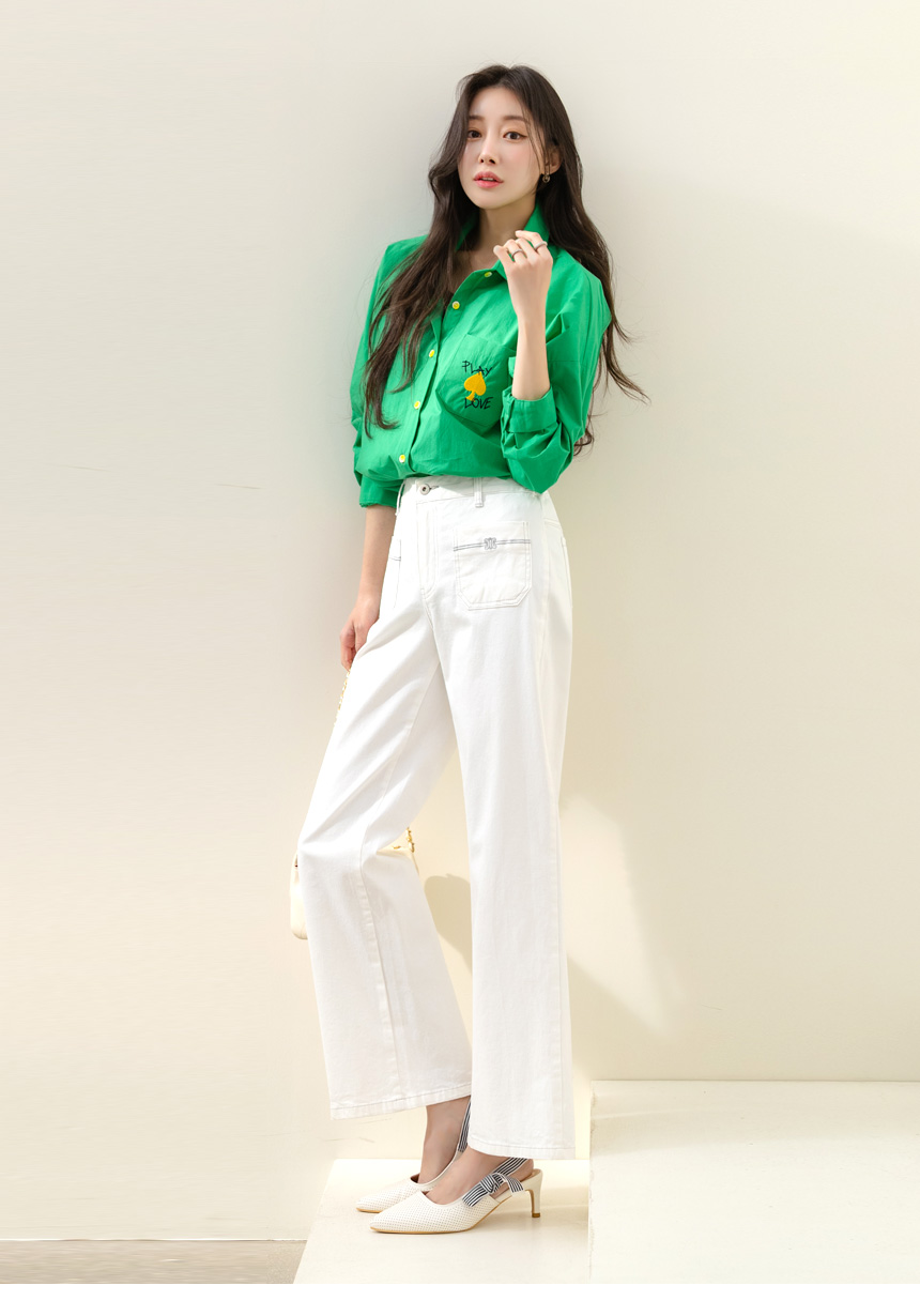 • 온디어 자수 포켓 백 밴딩 세미 와이드 일자 면 팬츠