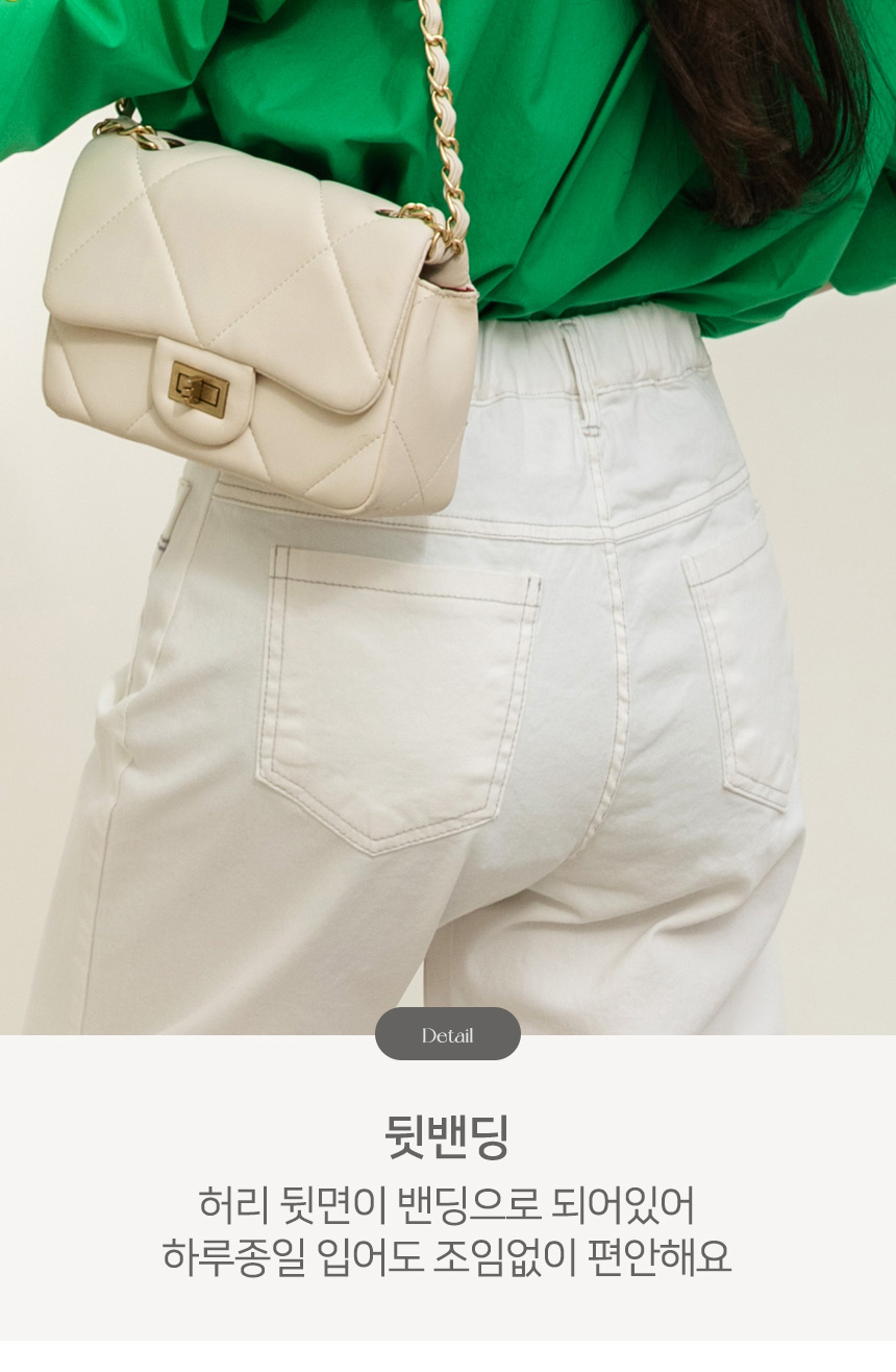 허리 뒷면에는 밴딩 디테일을 더해 부드럽게 허리를 감싸주며