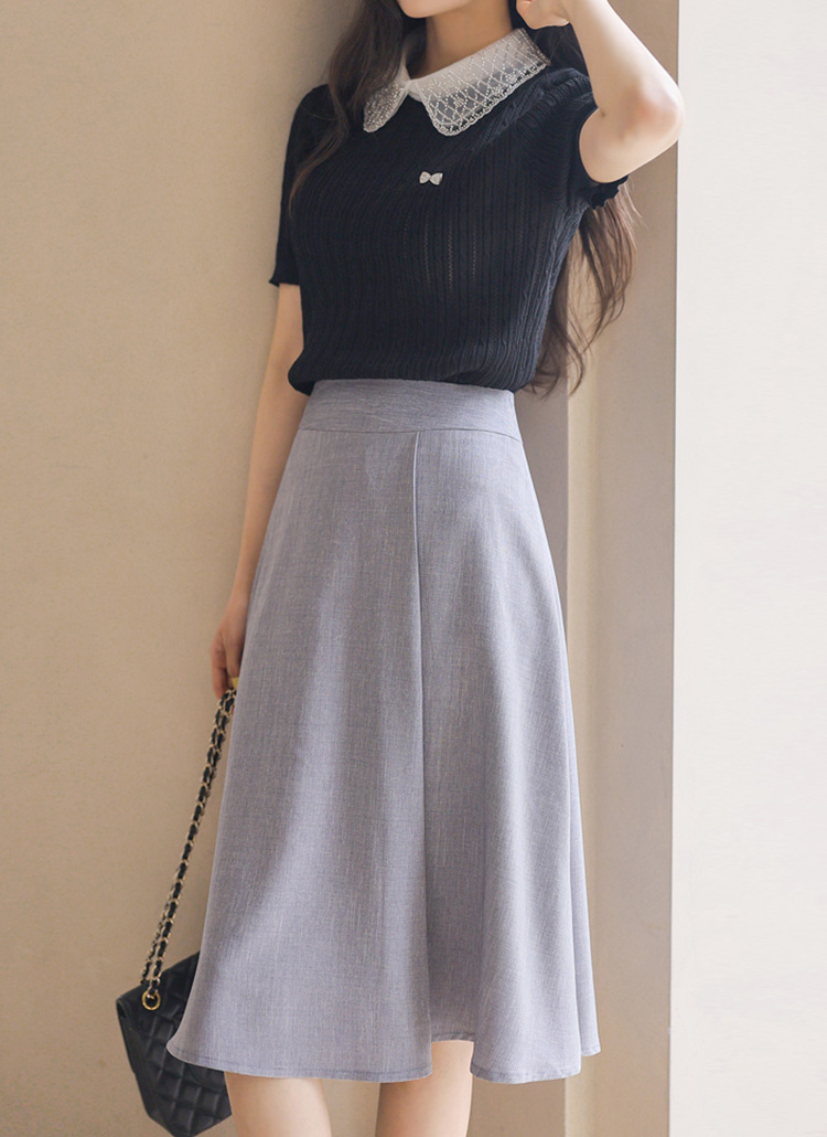 심플하면서도 우아한 분위기를 완성해주는 A라인 플레어 미디 스커트예요