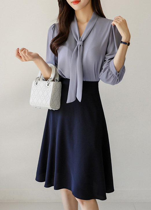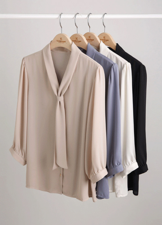 [Special Price] [LouisAngel] Simple Scarf Tie Blouse