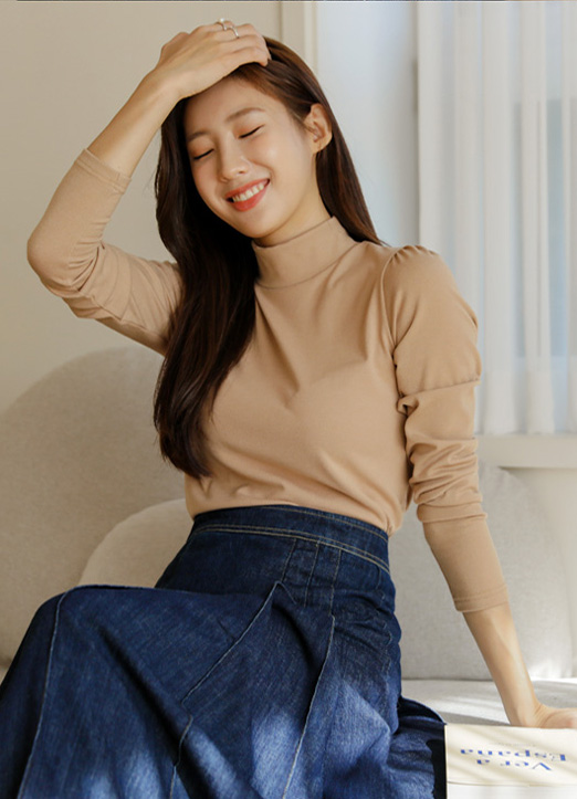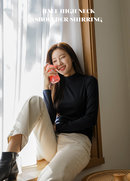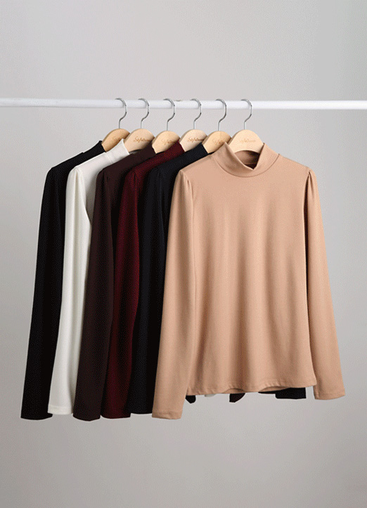 [LouisAngel] Stretch High Neck Shirring T-shirt