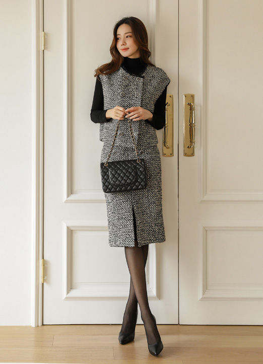 탄탄한 트위드원단으로 만들어져 세련된핏으로