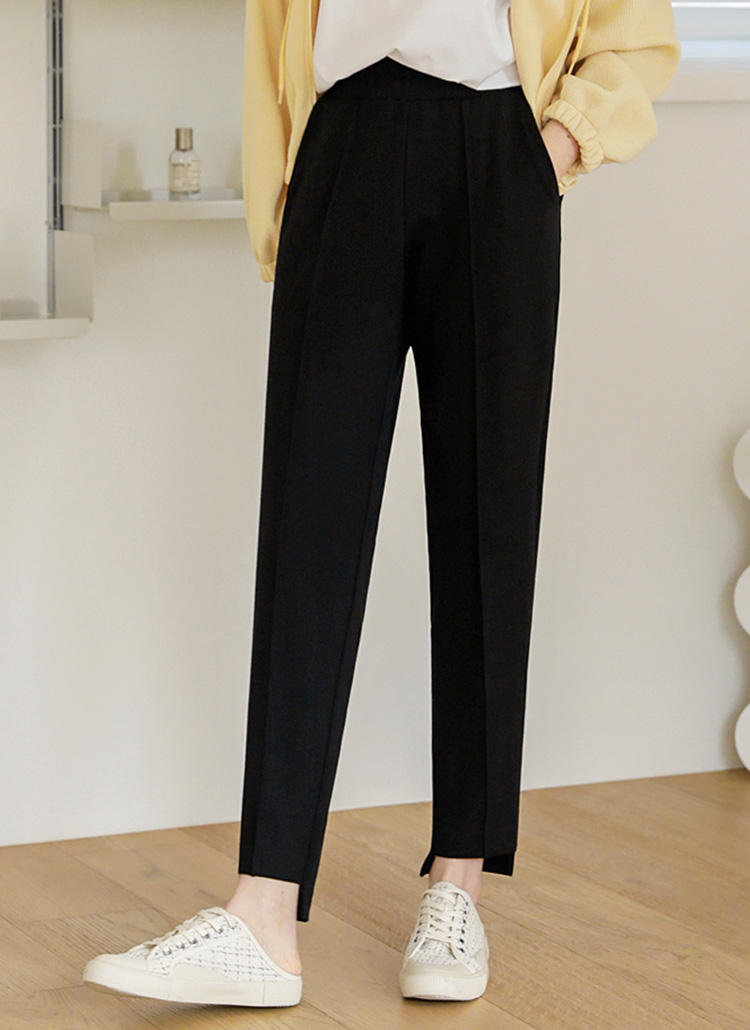 [A sleek, straight-leg fit with a stylish slit hem, offering both comfort and a flattering silhouette.]