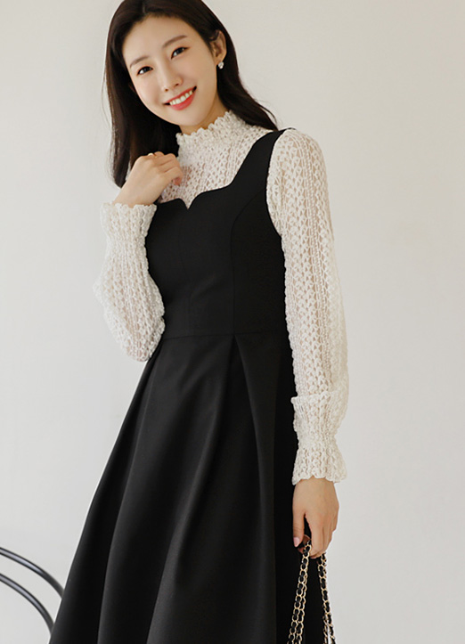 [Louis Angel] Heart Neckline Flared Pinafore Dress