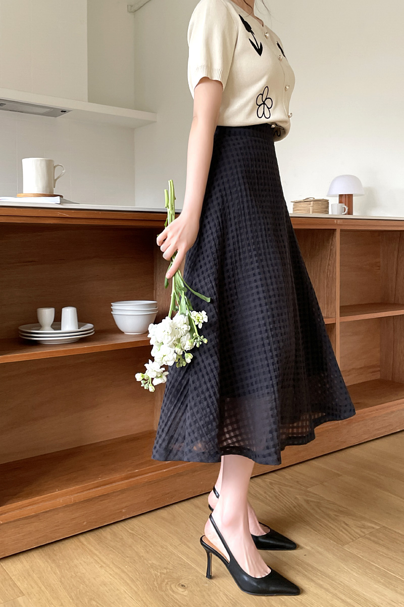 미디 기장의 플레어 스커트로