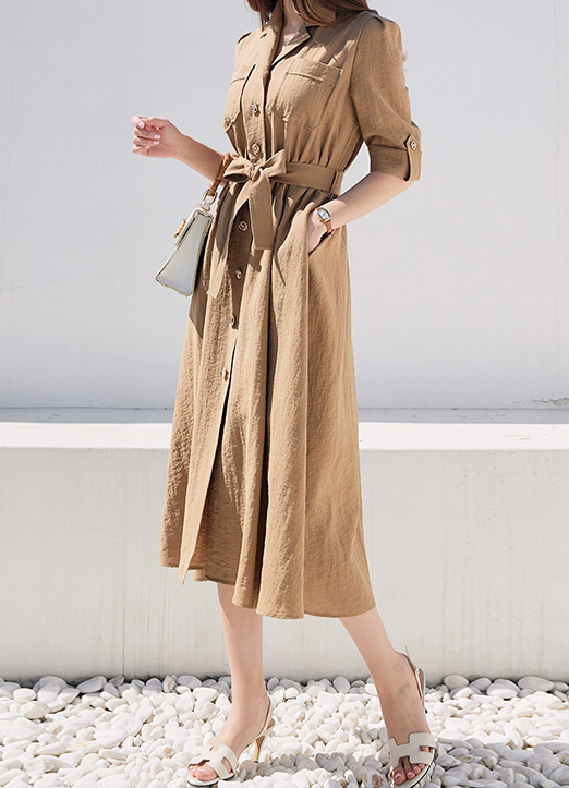 [Louis Angel] Linen Blend Self Belted Shirt Dress