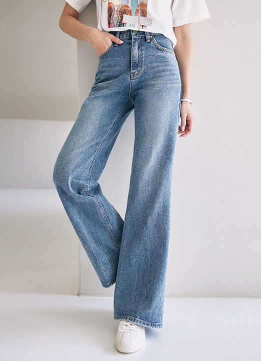 깔끔하게 다려놓은 듯 데님 팬츠지만