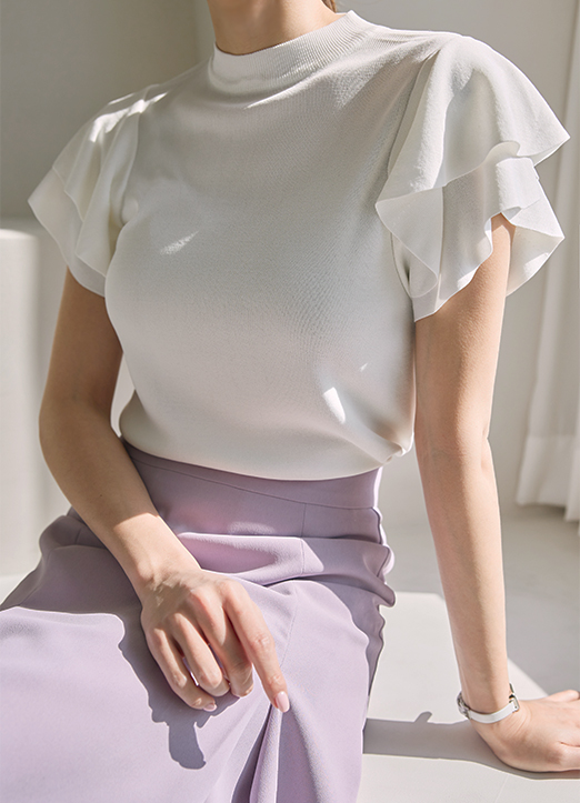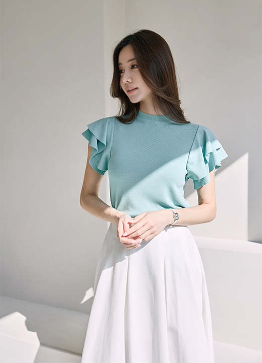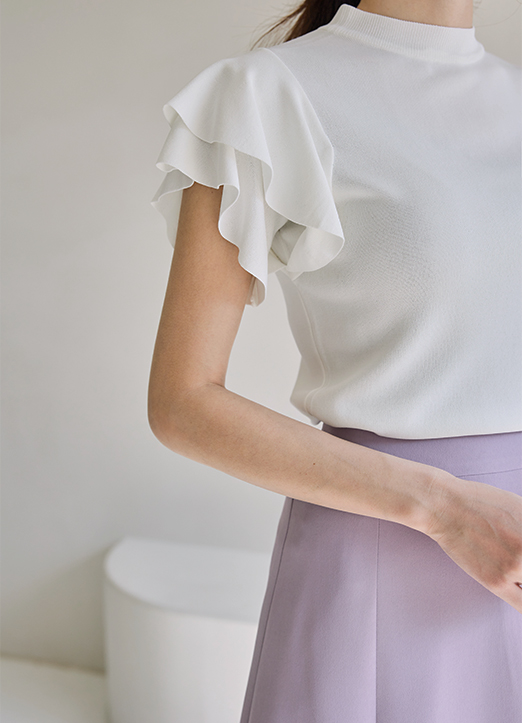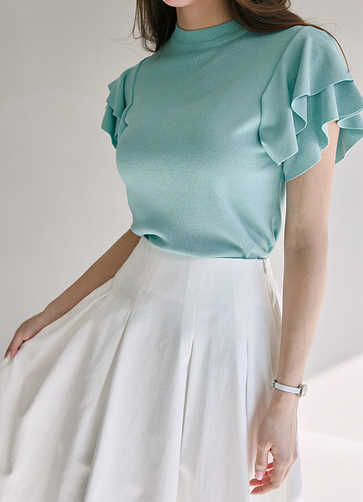 (5 Colors) Mock Neck Double Layered Ruffle Sleeve Top