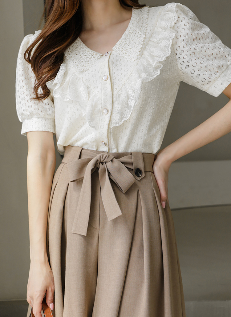 브이넥 프릴 비즈버튼 블라우스를 소개해요:)
