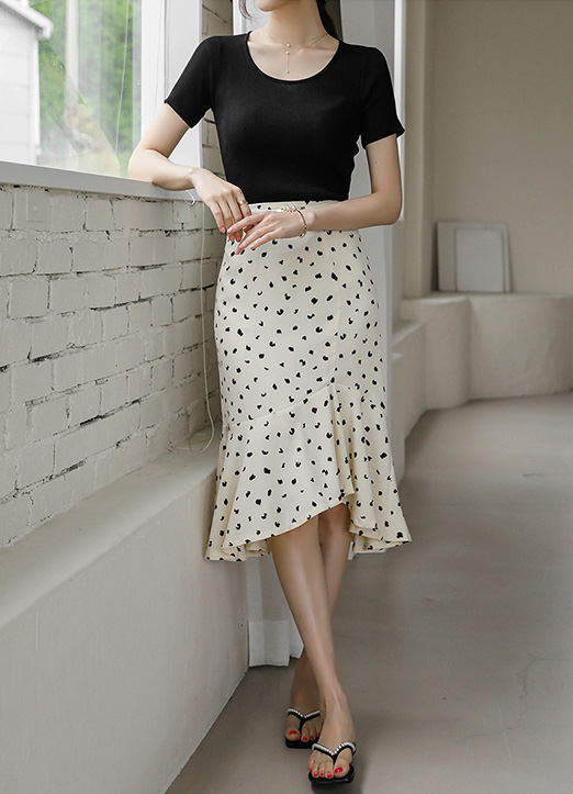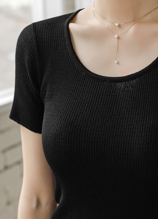 [Breathable rayon blend knit offers a smooth, cool feel, featuring a clean round neckline and body-hugging fit that delivers a sleek, feminine look across seasons.]