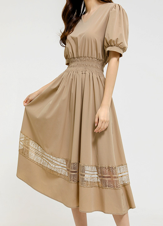 무릎 아래로 내려오는 롱한 길이감에 밑단에 시스루 레이스 배색이 들어가