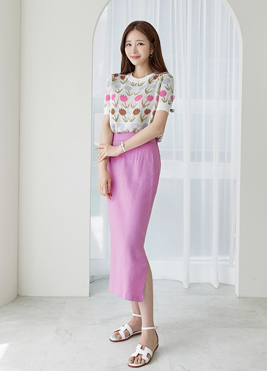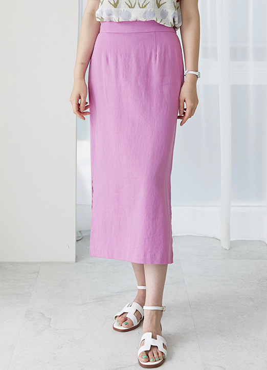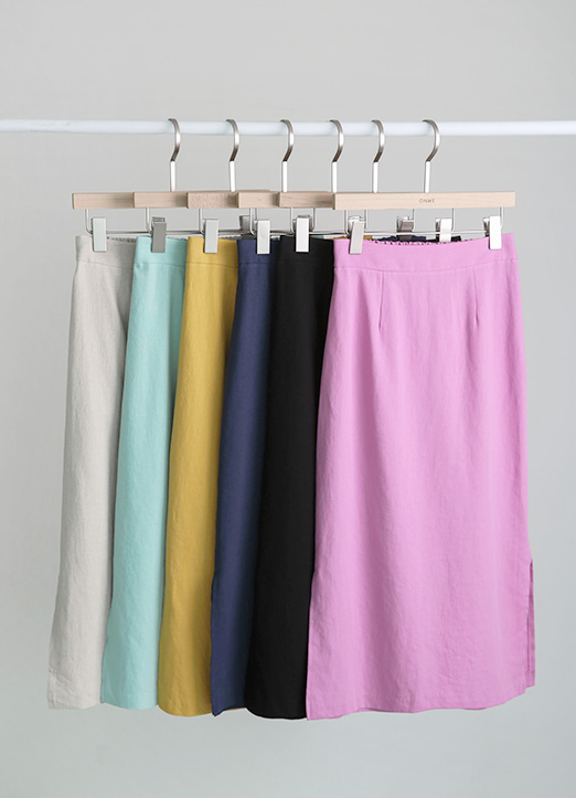 베이직한 디자인의 뒷밴딩 린넨 롱 스커트에요:)