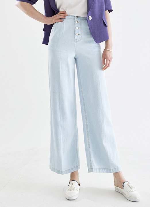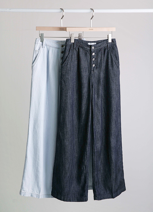 [THE ONME] Cool Summer Front Button Point Wide Jeans