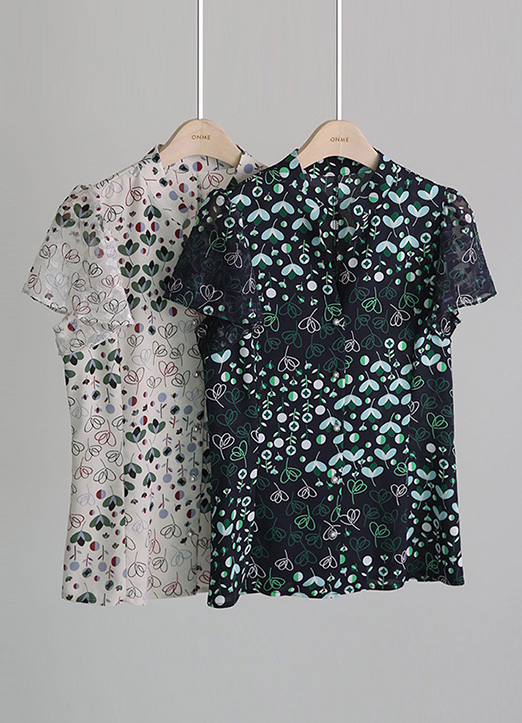 [Louis Angel] Botanical Print V-neck Mandarin Collar Blouse