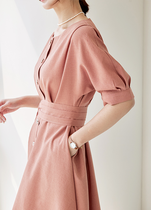 세미 가오리핏의 소매 핀턱 퍼프디자인이