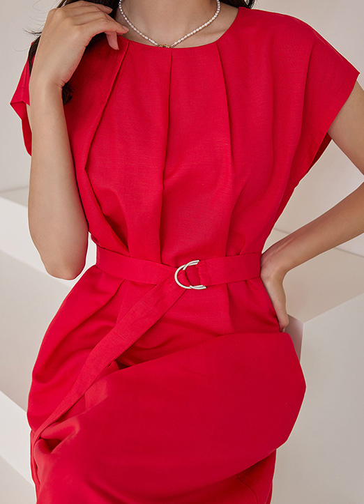 [Louis Angel] Linen Blend Self Belted Pintuck Dress