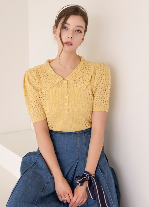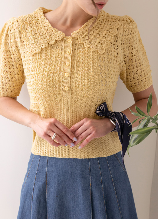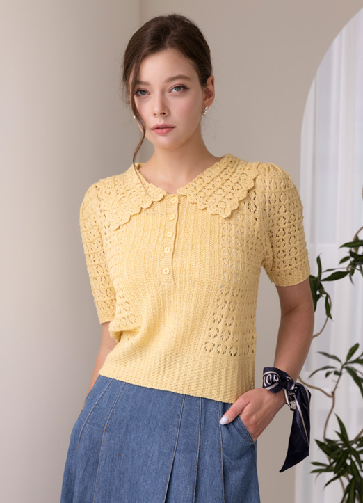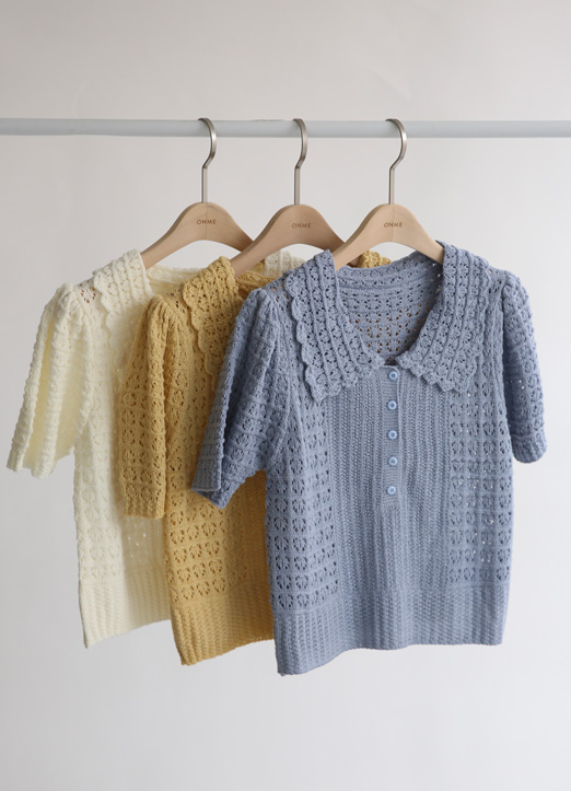 뜨개 물결카라 반팔 니트에요:)