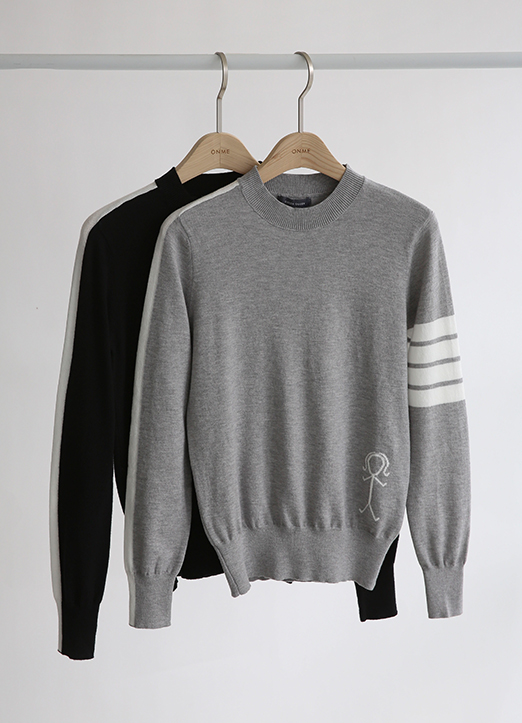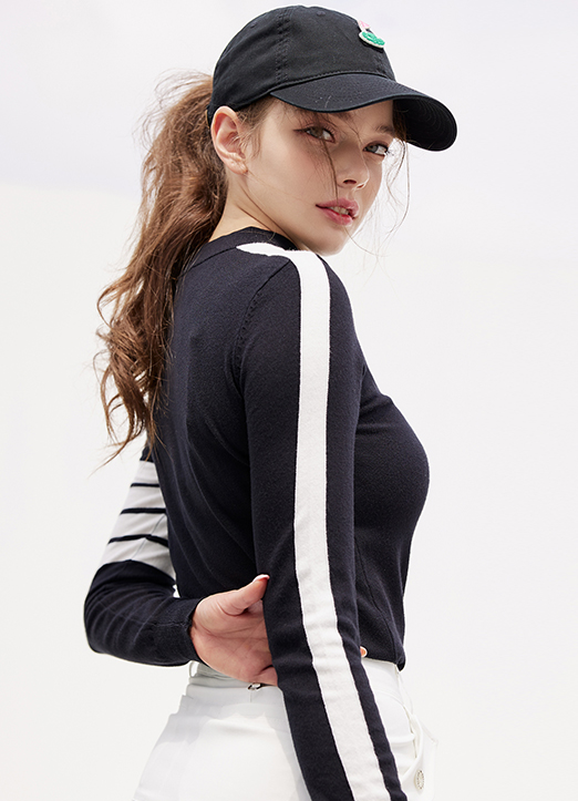 [THE ONME] Contrast Color Line Point Knit Top
