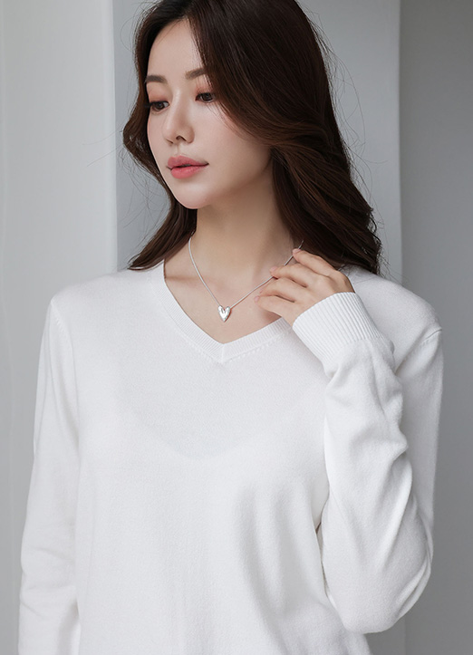 목선을 여리하게 살려주는 브이넥 디자인에