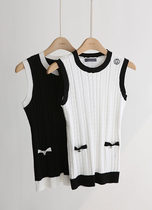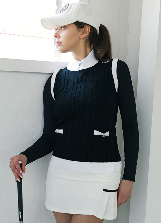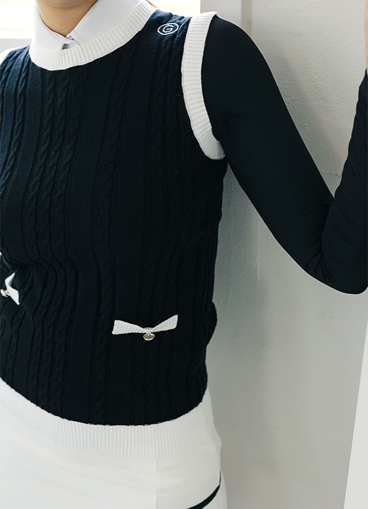 [QoG] Contrast Colored Edge Cable Knit Vest