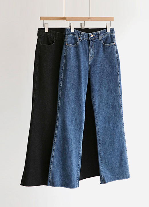 여유있는 일자핏에 밑단이 살짝 퍼져
