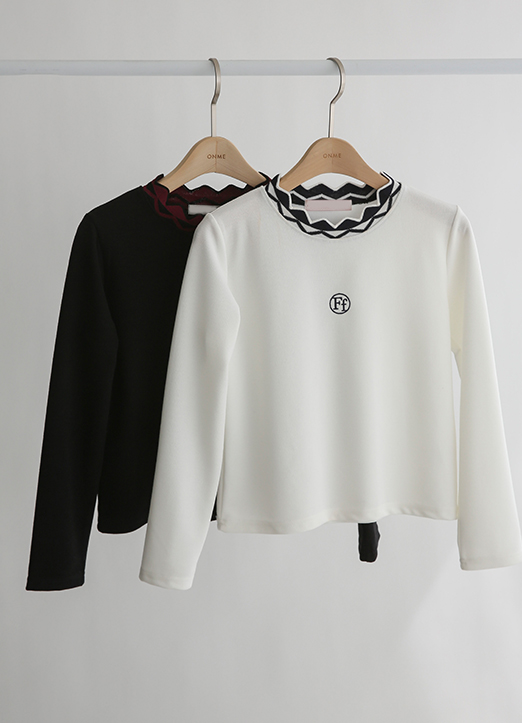[QoG] Contrast Wave Neckline Long Sleeve T-Shirt