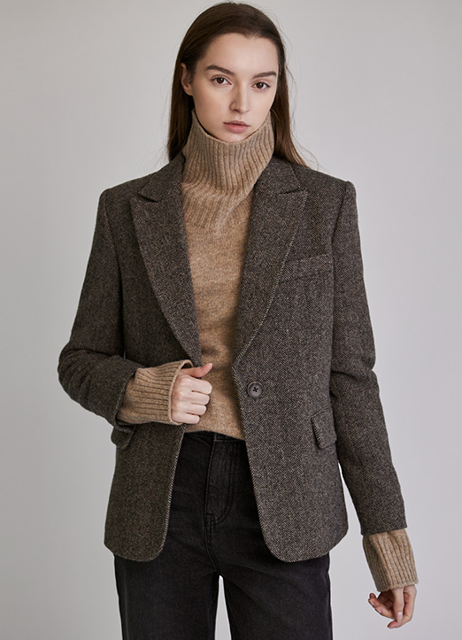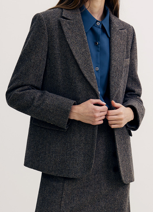 [The Onme] Wool80 Mix Herringbone Tailored Jacket