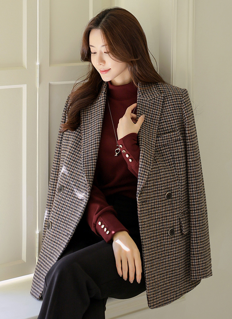 [LouisAngel] Double Breasted Houndstooth Tailored Jacket