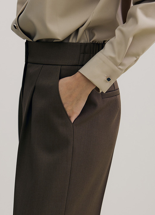 [The Onme] Elastic Back Waist Pintuck Wide Slacks