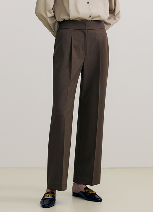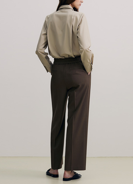 [The Onme] Elastic Back Waist Pintuck Wide Slacks