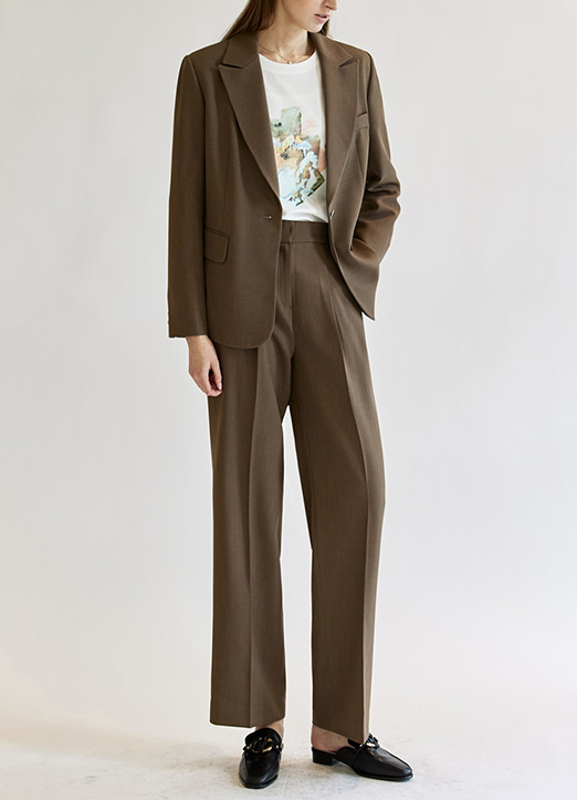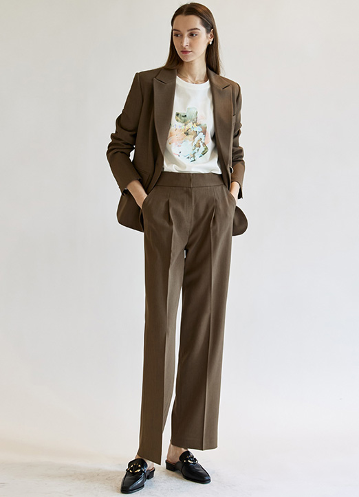 [The Onme] Elastic Back Waist Pintuck Wide Slacks