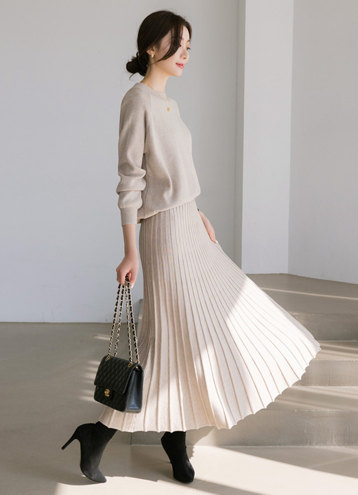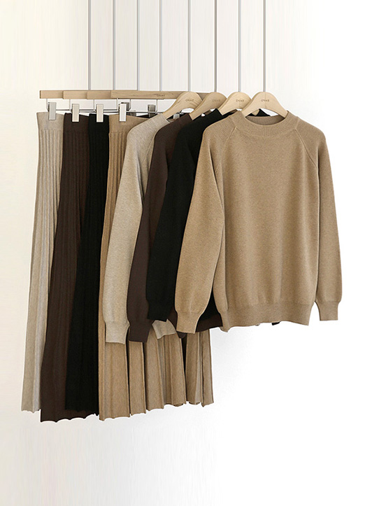 니트와 스커트 투피스 구성의 세트 아이템이에요 -