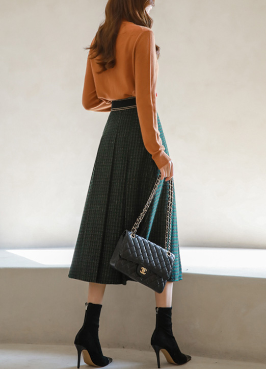 플리츠 A라인에 트임 디테일을 넣어 답답해 보이지 않으며