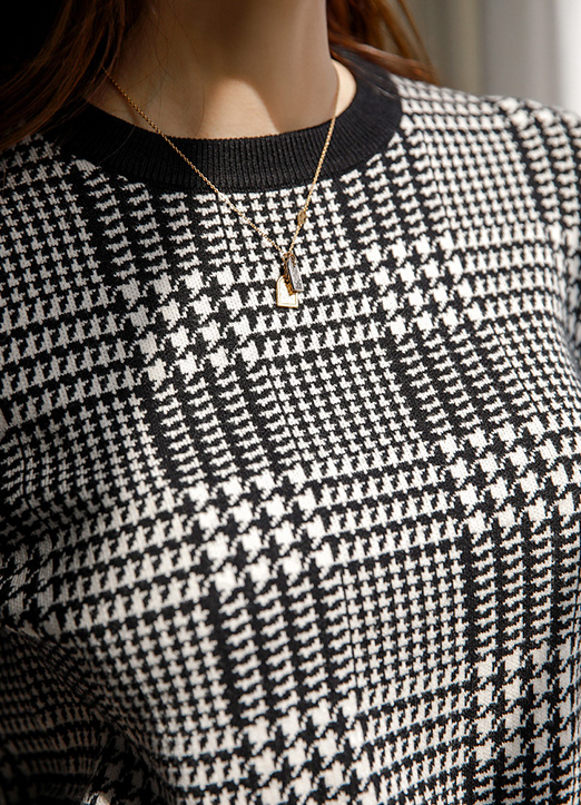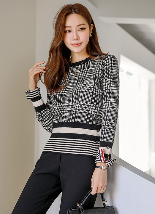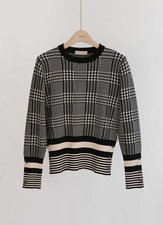 밑단과 소매에 배색 테이핑으로 고급스러운 포인트를 준 니트에요 :)