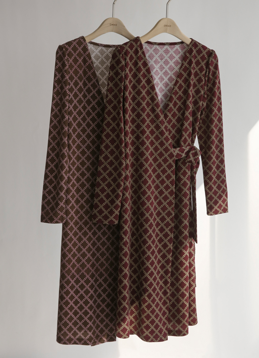 다크한 컬러톤에 엔틱한 무드 프린팅이 더해져