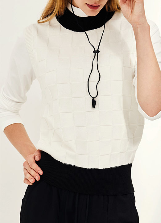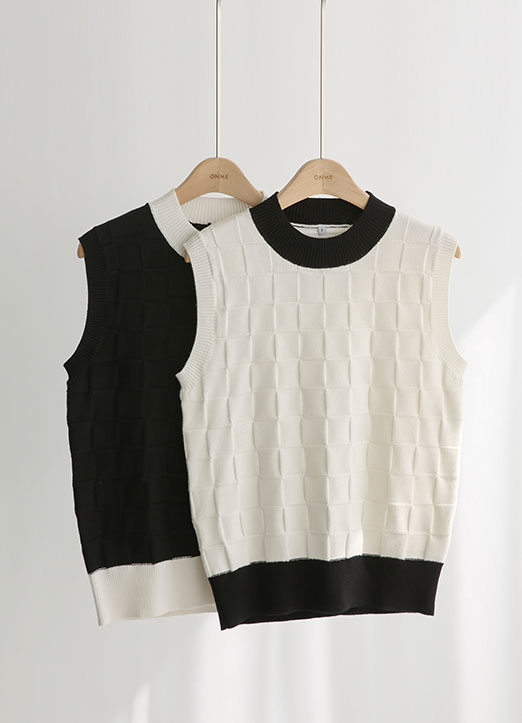 [QoG] Contrast Edge Garter Checkerboard Stitch Knit Vest