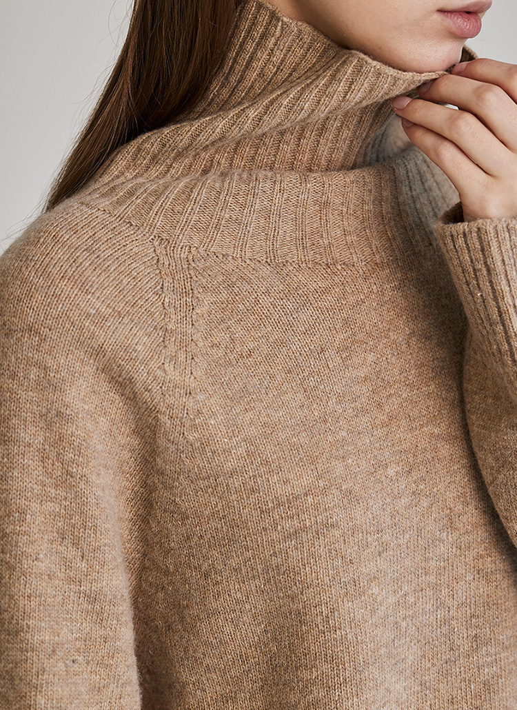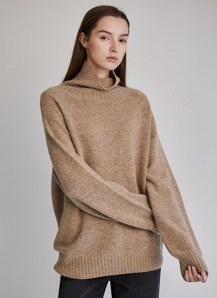 (4 Colors) Wool Blended Seamless Turtleneck Knit Top