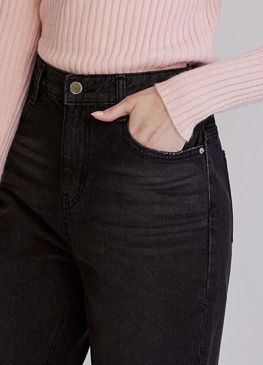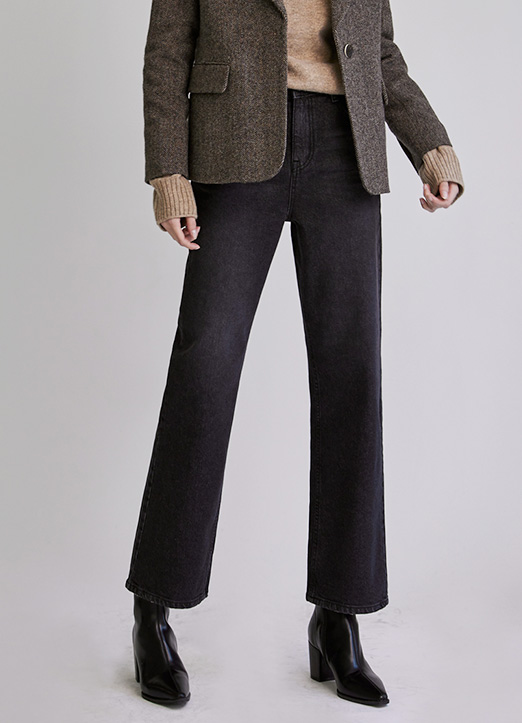 [The Onme] Elastic Back Waist Semi Wide Jeans in Black