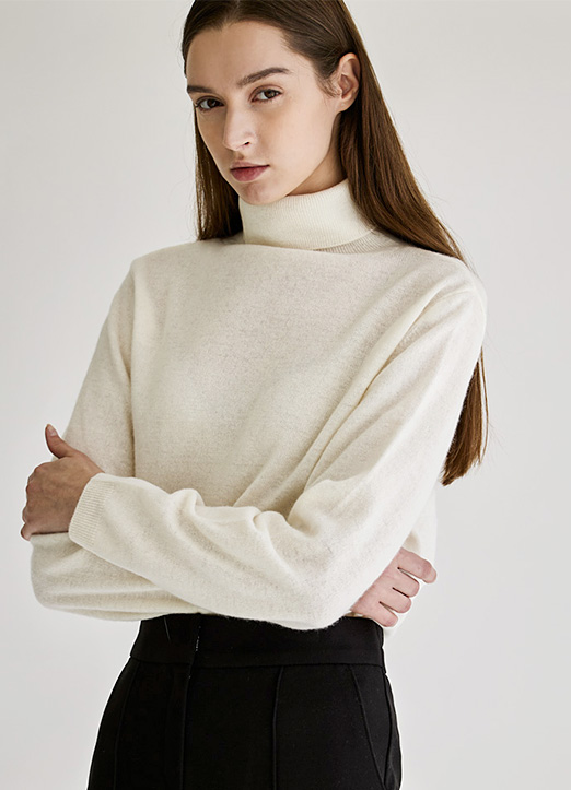 [The Onme] Cashmere-Blend Slim Turtleneck Knit Top
