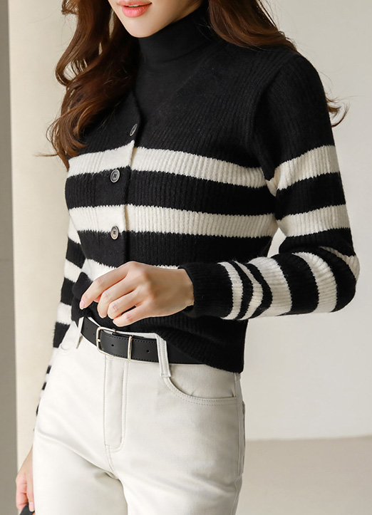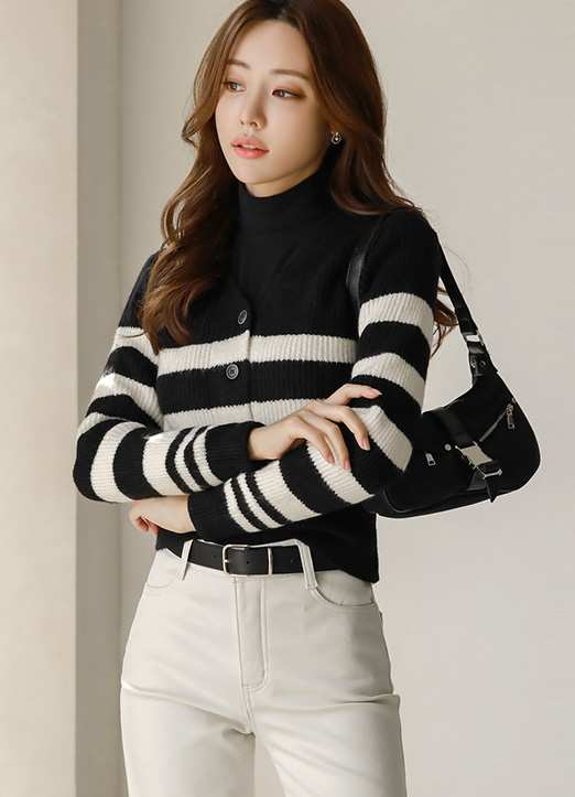 가로 스트라이프와 세로 골지 조직감으로 부해보임 없이!