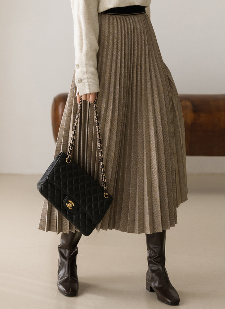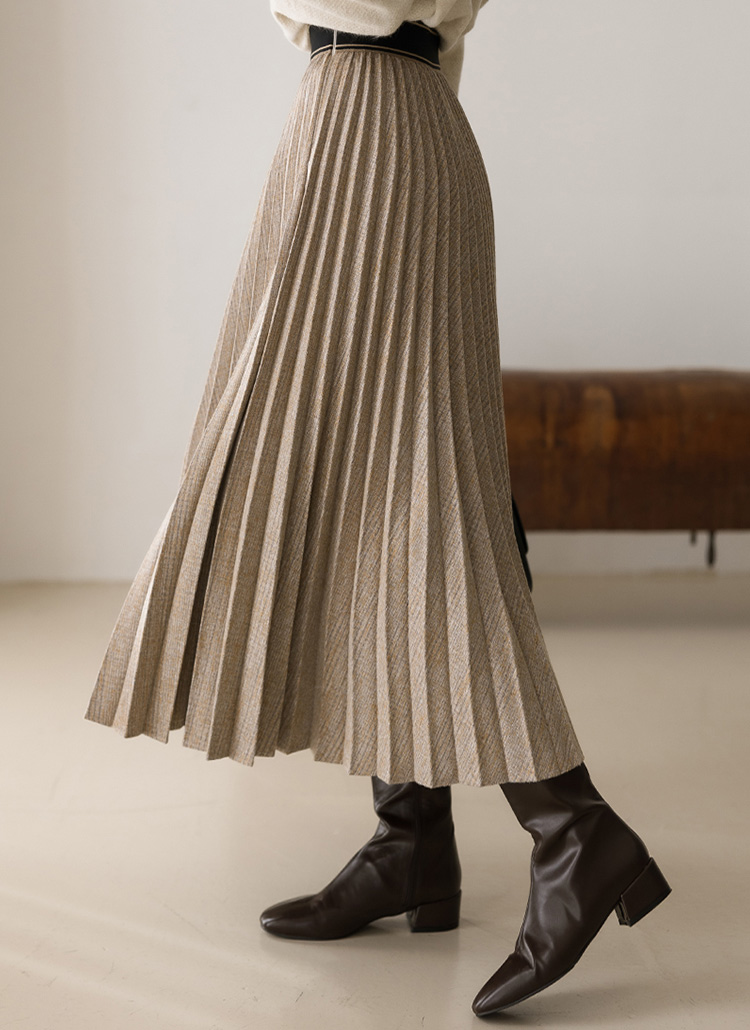톡톡한 두께감으로 플리츠가 무게감있게 툭 떨어져 우아한 스커트에요 :)