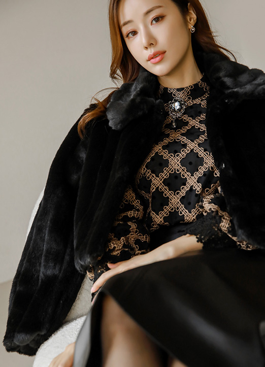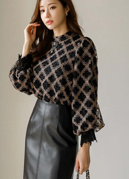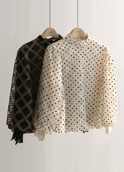 살짝 올라오는 하이넥과 소맷단 부분이 레이스로 되어있어