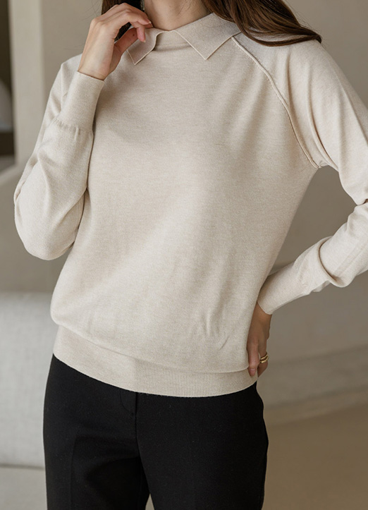 라운드넥에 카라 디자인이 더해져