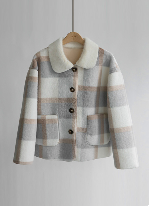 큼직한 체크 패턴과 헤어리한 퍼 소재가