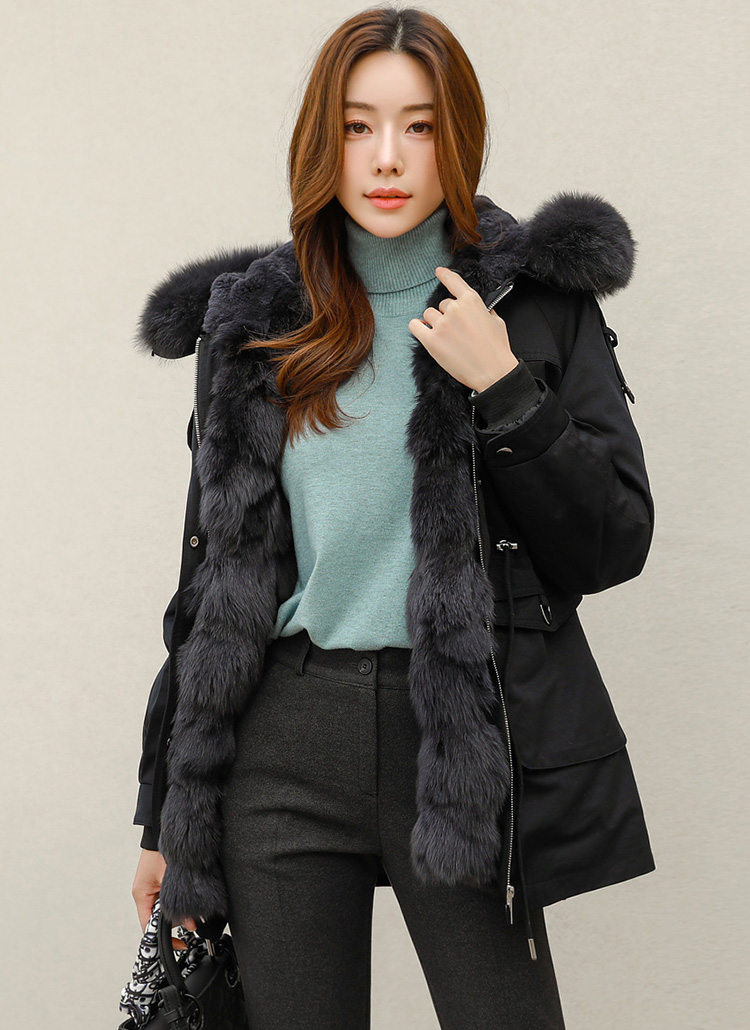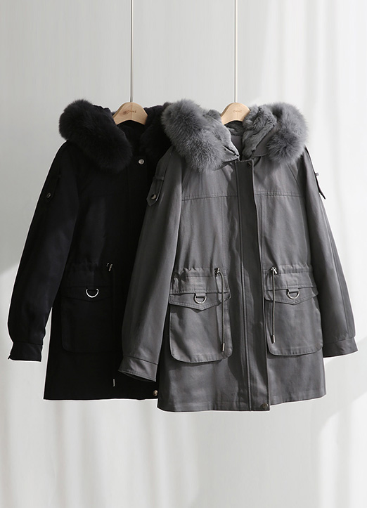 후드와 바디라인에 100% 리얼폭스퍼가 전체적으로 덮혀있어